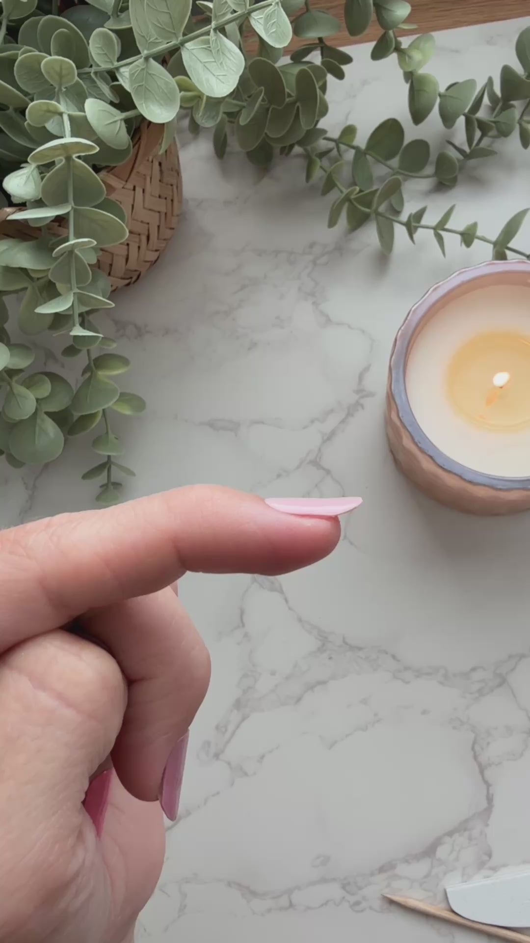 Place strip slightly above cuticle line and firmly smooth the strip on the nail. Use the wooden cuticle stick to roll down the edges of the strip and flatten against your nail.
