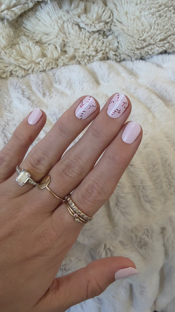 A sweet swirl of red and soft pearl white. This playful, striped design delivers holiday charm without feeling childish. Chic, bright, and perfect for December nails.
